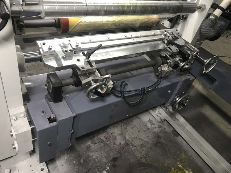 3.無軸裝版機(jī)構(gòu):裝版采用氣缸,拉動芯軸進(jìn)行裝版,橫向調(diào)節(jié)采用螺桿移動。特點(diǎn):減少換版時(shí)間,確保同心度,提高產(chǎn)品質(zhì)量。